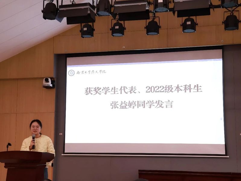 而后,获奖学生代表2022级本科生张益婷、2024级硕士研究生韦方宁分别作分享发言。张益婷同学回顾自身的求学经历,寄语同学们在探索中不断发现自我,勇敢前行。韦方宁同学则从历史学专业党员与研究生党支部书记的双重身份出发,分享学习实践中的思考与收获。
