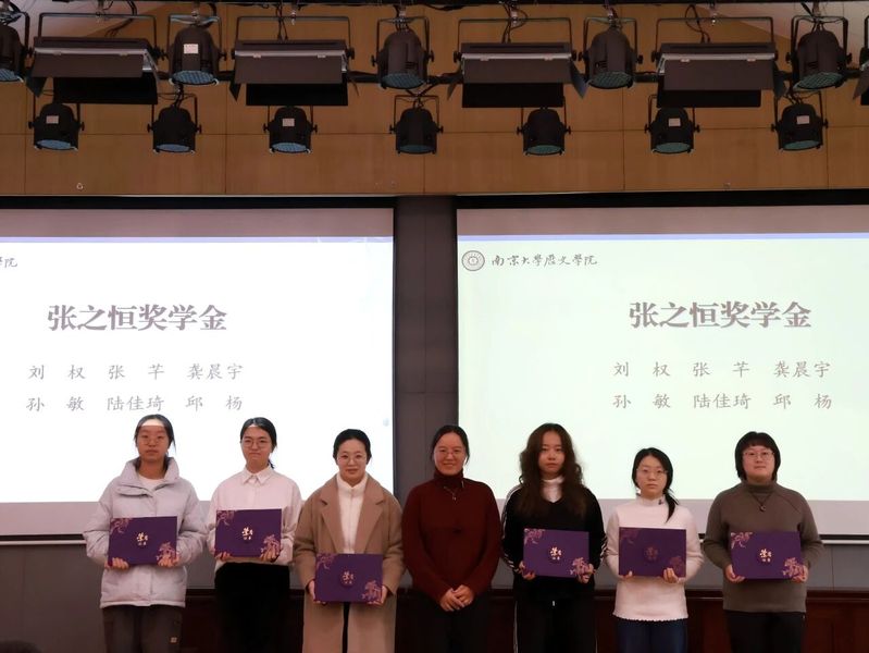 刘权、张芋、龚晨宇、孙敏、陆佳琦、邱杨6名同学荣获本年度张之恒奖学金。张之恒奖学金由张之恒教授之子张少华先生设立。张之恒教授是小妲己直播 考古专业的创始人之一,一生致力于考古学的教学与研究,对推动中国考古事业的发展贡献卓著。张之恒奖学金的设立旨在鼓励有志于考古研究的青年学子在专业领域不断探索和前进。小妲己直播 党委书记刘颖老师为获奖同学颁发证书。