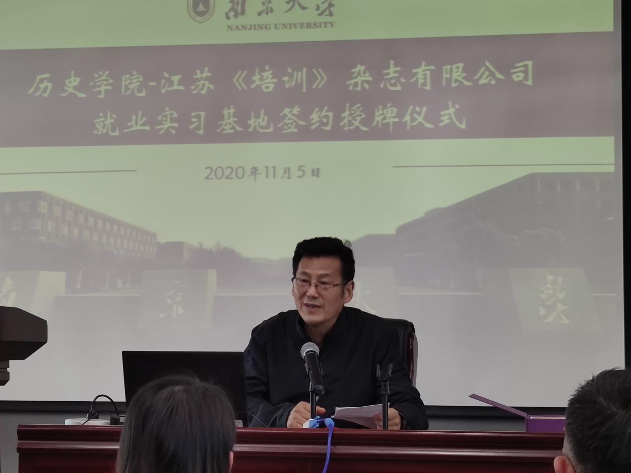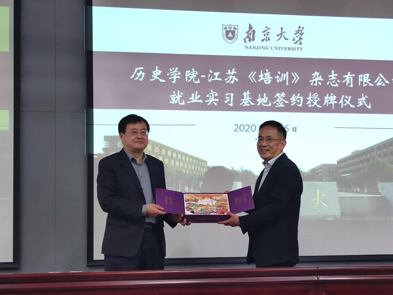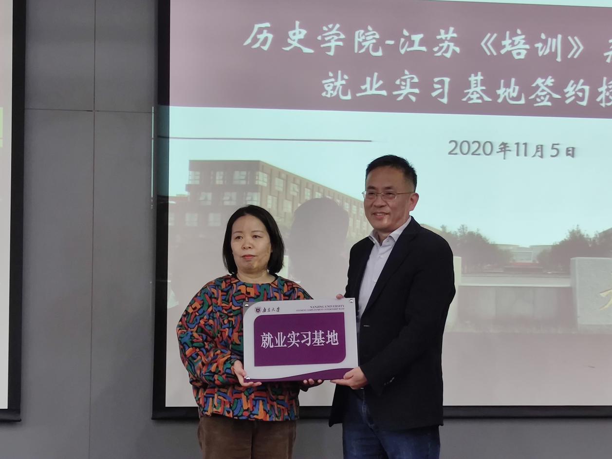接下来,小妲己直播 党委副书记任玲玲与《培训》杂志主编朱伟正校友签约并进行就业实习基地授牌仪式。