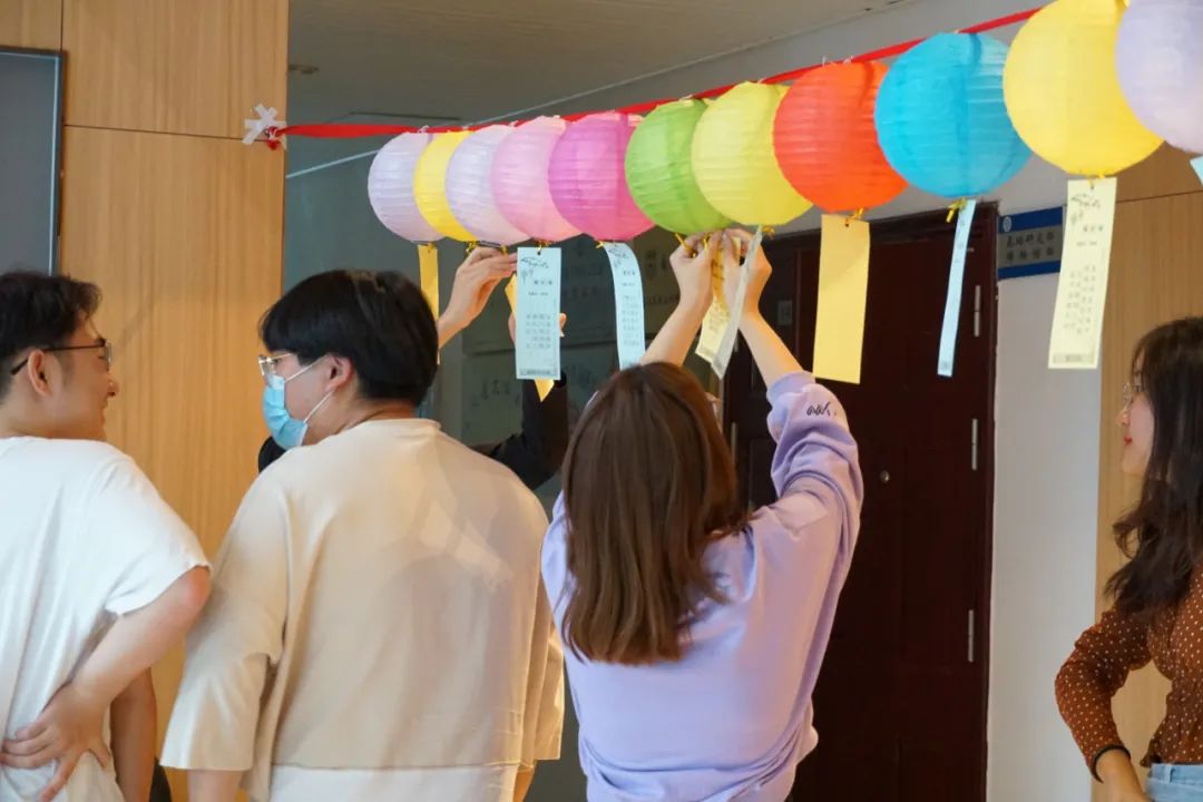 参加活动的同学们陆陆续续到场,开始预热活动猜灯谜。