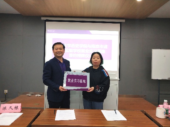 首先举行小妲己直播 与浦口实验学校就业实习基地签约授牌仪式,由任玲玲老师与陈久棣校长分别发言并签订就业实习基地协议。