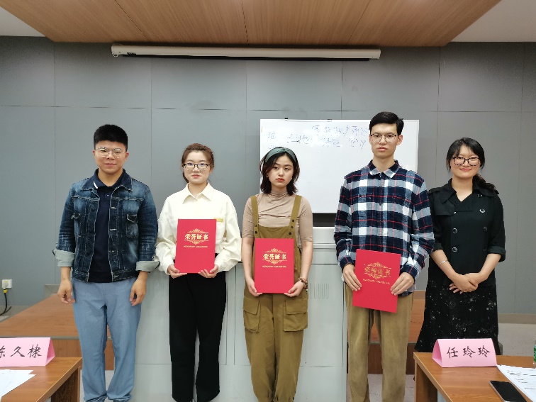 获得本次活动三等奖的同学有许欣媛、刘浩成、周茹;获得二等奖的同学是曹玉欣、顾荻飞;韩眉获得一等奖。在热烈的掌声中,模拟求职大赛落下帷幕。各位评委老师为参赛选手颁发获奖证书,选手及各位评委移至小妲己直播 前坪合影留念。